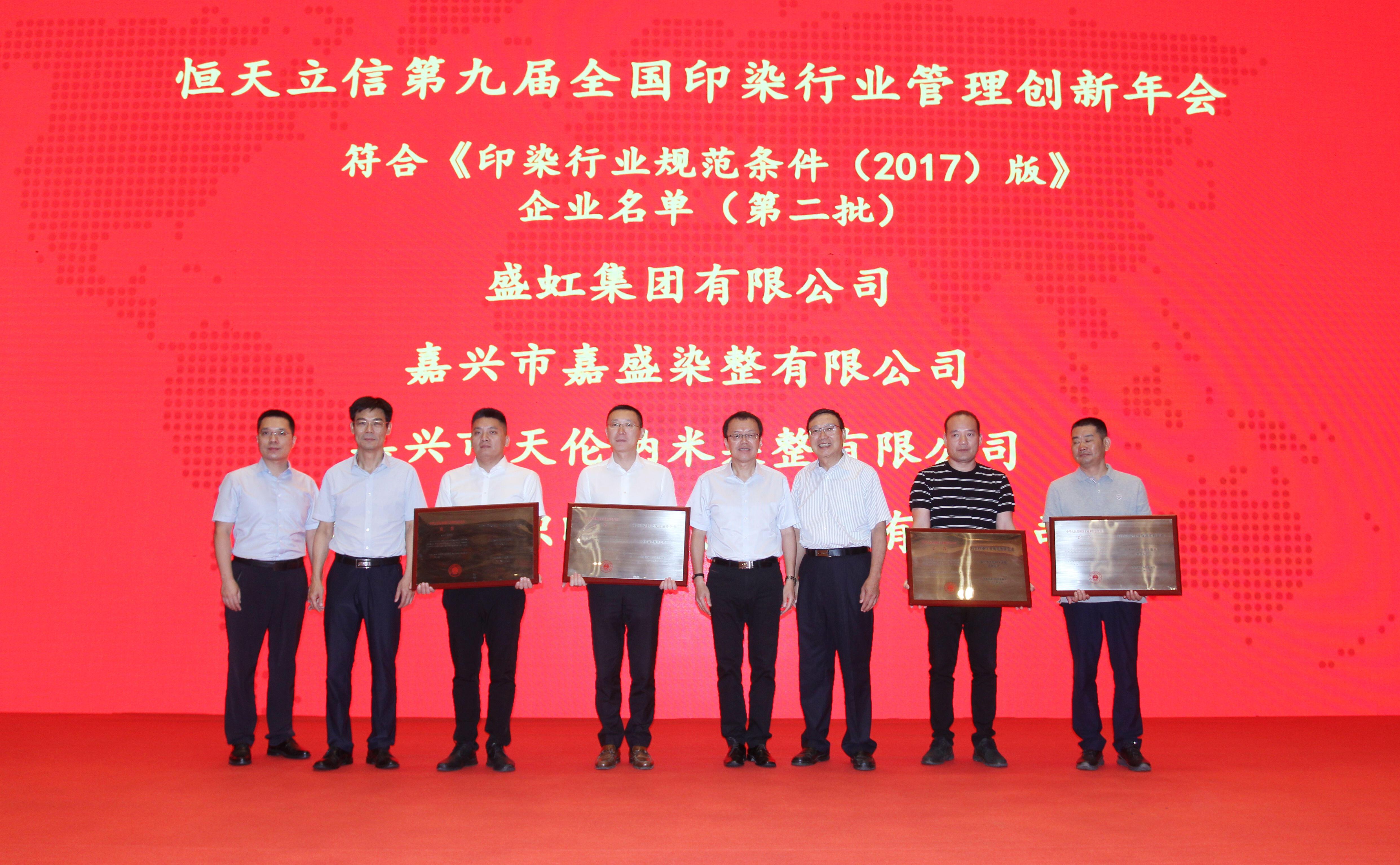 在活动现场,会议还对全国第二批符合《印染行业规范条件(2017版)》的16家企业进行表彰。永信贵宾会集团有限公司继续“硬核”上榜,为江苏省唯一一家入选本次榜单的企业。